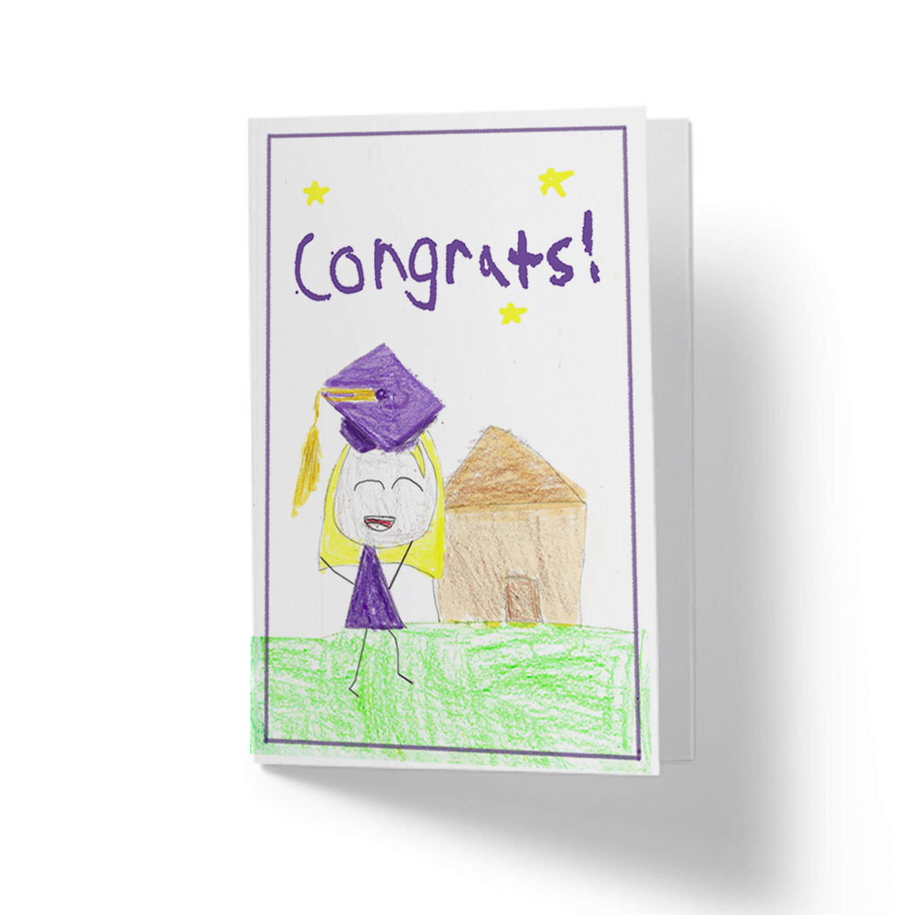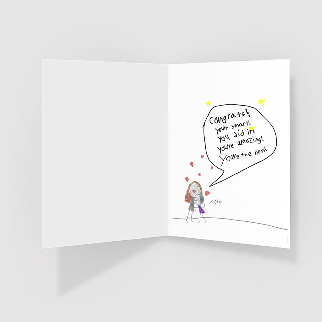 Mark the moment with Kira's "Congrats!" card, featuring a lively hand-drawn design full of joy and celebration. Perfect for any achievement, it’s a thoughtful way to share in someone’s success.